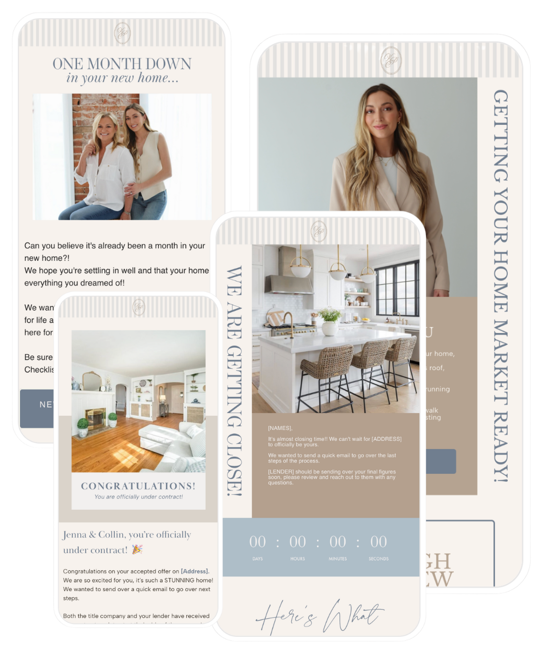 From “Under Contract” to one month post-close, these emails keep your buyers supported and informed every step of the way.